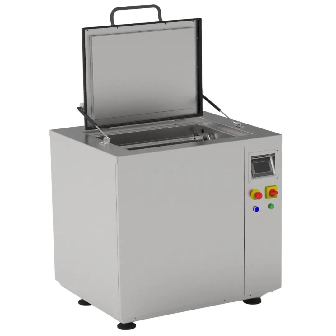 Nuestra potente cavitación eliminará la suciedad de las piezas. El baño está compuesto de agua y un detergente específico (5-15%) para cada aplicación. Calentando hasta los 90ºC aumenta el rendimiento total.