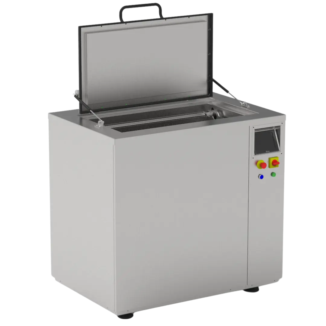 La cuba con ciclón de aire caliente retira rápidamente el agua de las piezas recién limpias, quedando disponibles para el proceso de producción. Un aislamiento térmico adecuado asegura el consumo eléctrico más bajo.